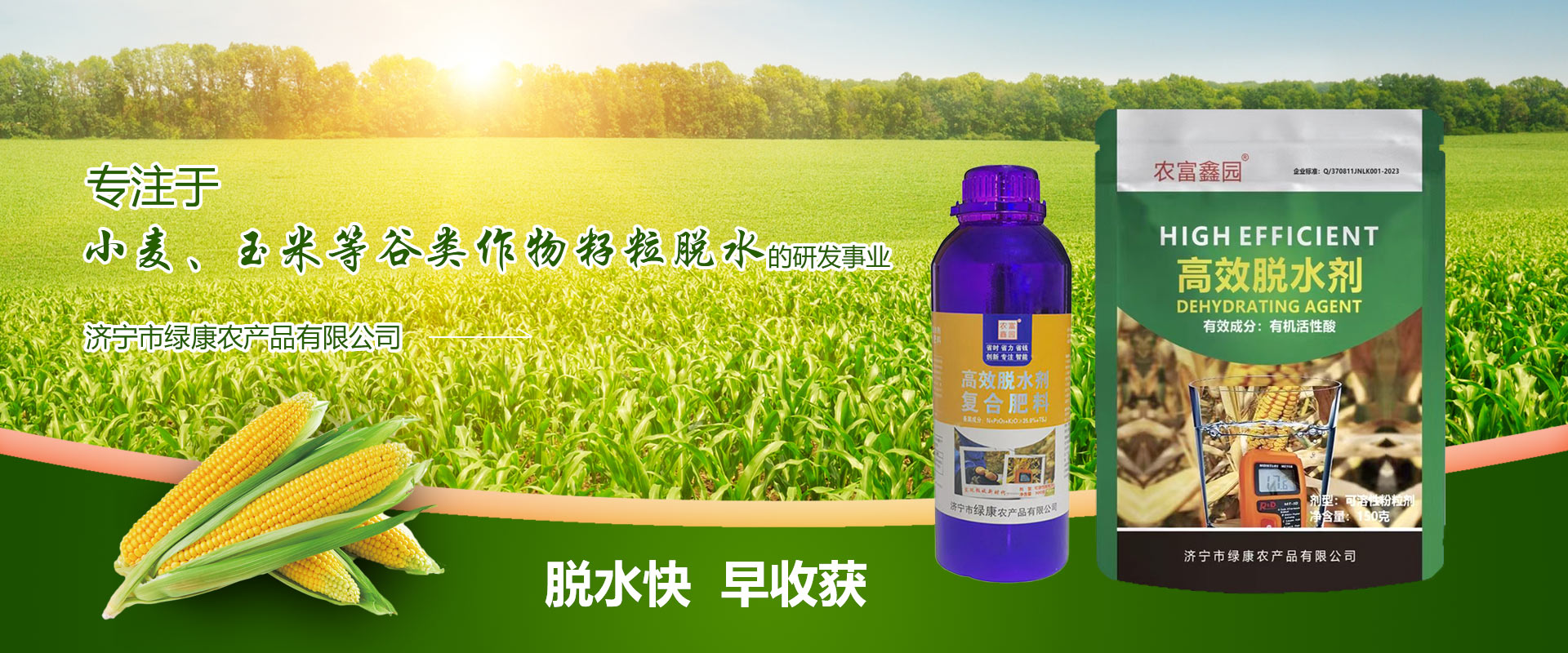 公司成立于2016年,坐落于歷史悠久的孔孟之鄉(xiāng),運(yùn)河之都的文明城市濟(jì)寧,一直秉承著“全心全意為中國農(nóng)業(yè)服務(wù)”為宗旨,解決糧食收獲時(shí)水分含量大、不易存儲的問題,綠康農(nóng)業(yè)專注于“小麥、玉米等谷類作物籽粒脫水”的研發(fā)事業(yè),2020年和山東農(nóng)業(yè)大學(xué)達(dá)成戰(zhàn)略合作關(guān)系,針對玉米脫水劑一項(xiàng)發(fā)明專利進(jìn)行全國運(yùn)營,為中國糧食作物的減少烘干、減少晾曬、節(jié)能減碳、提質(zhì)增效的新型技術(shù)發(fā)明,解決中國農(nóng)民30年來玉米的貪青晚熟、積溫不夠問題而研究出來的新方法,提速農(nóng)業(yè)4.0時(shí)代機(jī)械化生產(chǎn),開啟籽粒收割新時(shí)代...
